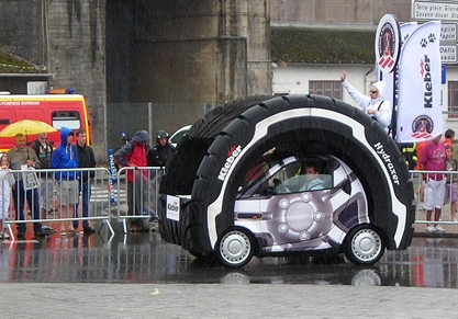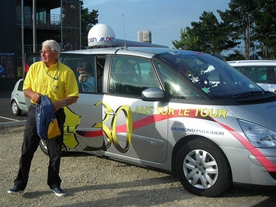 4ème étape du Tour de France : Lorient-Mûr de Bretagne. A 8h00 Jean-Claude est sur les lieux du départ à la cité de la voile Eric Tabarly. A cette heure le soleil est au rendez-vous mais sur le coup de 10h00 changement de temps car la pluie et le vent font leur apparition. Cà ne changera plus jusqu'au départ de la course à 12h50. Première visite pour le stand "Bretagne Schuller" placé bien loin du village du Tour de France auquel on ne peut accéder que sur invitation. Impossible de pénétrer, les cerbères de l'A.S.O. font bien leur boulot. On ne joue pas dans la même cour. Les passionnés de vélo doivent admirer de loin. Des barrières partout. Jean-Claude est un peu écoeuré : çà sent le commercial à plein nez. Il faut vendre. Quand même quelques bonnes photos et quelques babioles récupérées. Remerciements à M René Hayot pour son accueil sur le stand "Bretagne Schuller". Par contre, Jean-Claude ne félicite pas la société A.S.O. qui ne daigne même pas répondre aux mails qui lui s ont adressés. Une bonne matinée quand même pour Jean-Claude rentré trempé (à tordre). Quelques cyclos volontaires du club sont placés à des endroits stratégiques pour protéger le passage des coureurs.