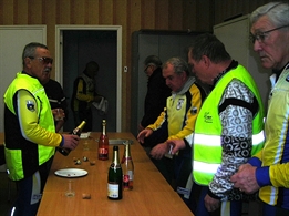 Pour notre dernière sortie de l'année, on se prépare pour une petite balade vers La Madeleine car au retour prévu pour 11h30 on doit fêter les anniversaires de Jean (notre Ancien) et de Joël. Malheureusement, quelques incidents vont nous retarder. C'est d'abord Jean-Luc qui, malgré une bronchite, ayant voulu venir rouler se trouve attardé dès la moindre bosse suite à des problèmes de respiration. Puis c'est au tour de Jean de percer de la roue arrière à la sortie de Gestel. Déjà 10h40, il faut penser à rentrer. Direction la route côtière par Brangoulo et retour sur Ploemeur au Courégant. Une sortie de tout juste 50 km mais à La Longère on se retrouve tous avec plaisir pour clôturer agréablement 2011. Quelques photos un peu plus haut.