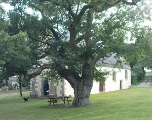 Pour notre sortie du jeudi, Jean-Pierre nous emmène sur Plouay via Arzano puis sur Kerchopine. Là il nous fait revenir sur Cléguer par une petite route de campagne via Loguénerh (avec une bonne bosse pour pur grimpeur) et St Guenaël. Jean-Claude, pourtant toujours à l'affût d'un bon cliché, ne prend pas le temps d'un petit arrêt dans ce dernier village. Une curiosité à ne pas manquer : un chêne d'environ 250 ans, de 15 m de haut, de 15 m d'envergure et de 4,35 m de circonférence près d'une chapelle et d'une fontaine datant du 15ème siècle. Heureusement, Joël a eu le bon réflexe du cyclotouriste et le chêne avec la chapelle ont pu être immortalisés sur le site. Promis, la prochaine fois qu'on passe à St Guénaël, Jean-Claude prendra le temps de s'arrêter pour quelques photos (à suivre ...)