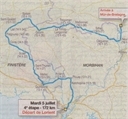 Comme annoncé et la météo, contrairement aux jours précédents, étant assez favorable, Hervé G. nous a concocté une sortie de reconnaissance d'une partie de l'étape du Tour du côté de La Trinité Langonnet. Un arrêt pique-nique est prévu vers midi au barrage de Glomel. Nous sommes 19 cyclos présents à La Longère mais seulement 16 vont effectuer la sortie complète sur la journée. Malheureusement, Jean-Jacques nous quittera à Meslan et rentrera seul sur Lorient car ayant une bronchite et sous antibiotiques il n'a pas les jambes pour faire une si longue sortie. Chaque participant ayant déposé son casse-croûte dans la voiture d'Hervé et après quelques photos de Jean-Claude, c'est le départ à 8h03. Le beau temps est là mais également le vent du Sud-Ouest qui rafraichit la température. Les 16 courageux du moment : Jacky, Jean M, Marc, Joël, Daniel, Jean-Pierre, Jean-Yves, Jean-Paul, Patrice, Guy, René, Lucien, Jacques, Bernard, Jean C et Jean-Claude. Hervé nous accompagnera en voiture toute la journée. Incident dans la descente vers le zoo de Pont-Scorff avec une crevaison de la roue avant de Jean-Paul. Jean-Claude est obligé de sprinter dans la bosse du zoo afin de signaler l'incident à la tête du groupe qui s'arrête. Jean-Claude repart rejoindre Jean-Paul qui répare en compagnie de Paul qui était là par hasard. Réparation terminée, Jacky prend la sage décision d'équiper le groupe des 2 talkies à savoir un pour lui en tête du groupe et le deuxième pour Jean-Claude en queue de peloton. Cette précaution s'avèrera très utile surtout lors des passages délicats dans les nombreuses côtes jalonnant le parcours, les aptitudes de grimpeurs étant assez disparates dans le groupe. Pont-Scorff, Arzano, Meslan, Berné, Priziac, çà roule bien. Après Priziac çà commence à se corser car les pourcentages commencent à augmenter. Au passage de l'Abbaye de Langonnet, Jean-Claude est déçu de ne pas avoir eu le temps de prendre quelques clichés. Il se rattrapera à Trégornan où une petite pause est la bienvenue. Quelques clichés de la chapelle restaurée en 1850 et de son ossuaire sont pris. Déjà 11h30 et il nous reste encore du chemin jusqu'à Glomel. Hervé nous fait passer par le bas de l'étang de Korconc par toute une succession de côtes à fort pourcentage. La pause casse-croûte est vraiment la bienvenue. 85 km parcourus et les organismes commencent à souffrir pour certains. Le cadre est agréable au bord de l'étang au soleil à l'abri du vent. Jean-Claude propose même un tour de pédalo histoire de garder les jambes en condition (boutade). Les estomacs remplis et les organismes requinqués, il faut penser au retour non sans prendre le temps d'un petit café sur la place du village. On se refait les côtes et les descentes en sens inverse et direction St Michel. La reprise est difficile et les jambes sont lourdes. Devant ils ont des fourmis dans les jambes et Jean-Claude reste en serre-file avec Jean-Pierre qui n'a pas roulé depuis 15 jours et qui accuse le coup. Les talkies-walkies sont bien utiles pour se positionner les uns par rapport aux autres. Jean-Claude : "On vient d'entrer dans Le Merdy. Encore une bosse avalée !". Jacky : "OK, on vous attend un peu plus loin !". Avant Kerguzul, crevaison roue avant de Jean C. L'arrière-garde décide de continuer à allure réduite : "On roule tranquilles, vous nous rattraperez". Ce qui fait que Jean-Pierre, Guy, René, Daniel et Jean-Claude se retrouvent devant. Dans la traversée de la forêt une sacrée averse tombe sur le dos de ce groupe. Ceux qui étaient restés avec Jean n'auront que l'humidité de la route à supporter. Jean-Claude : " On a pris tout droit, St Tugdual 5 km et on vient de passer une bonne bosse !". Jacky : " OK, on n'est pas loin, on arrive !" . Petit arrêt sur la place de St Tugdual pour un regroupement général et une petite photo puis c'est reparti en direction de Le Croisty. Passage au rond-point "Fontaine de Vie", quelques photos de Jean-Claude du peloton, puis c'est St Caradec Trégomel. Devant la décision est prise de renter sur Plouay par la vallée du Scorff. Dans la bosse de Ste Anne des Bois, le groupe éclate car devant çà commence à sentir l'écurie. Guy, Jean-Pierre et Jean-Claude forment l'arrière-garde et à 30-31 km/h ils ne reverront l'avant qu'à Plouay. Les derniers km sont ardus pour Jean-Pierre mais on finit tous par rentrer à La Longère, fatigués mais contents de notre journée. Il est 17h et un petit rosé n'est pas de refus. Une dernière formalité pour Jean-Pierre et Jean-Claude : le retour sur Lorient par l'écluse du Ter et Kerbernès. Bravo à Jean-Pierre qui s'est bien accroché malgré le manque de Km. Petite anecdote lors de notre entrée à Ploemeur au retour : une voiture de gendarmerie qui était bloquée derrière nous depuis un petit moment monte à notre hauteur et le gendarme assis côté droit lance à Jean-Claude : "Lorsqu'il y a beaucoup de circulation, vous êtes priés de rouler en file indienne !". Jean-Claude : "Mais nous sommes à trois en file indienne !". Le gendarme : "Certainement pas !". Jean-Claude : "Ah bon ? Nous sommes à 3 les uns derrière les autres. Expliquez-moi où est la différence avec une file indienne !". Vexés les gendarmes n'ont pas insisté et ont continué leur chemin. Comme quoi l'uniforme ne fait pas tout .....